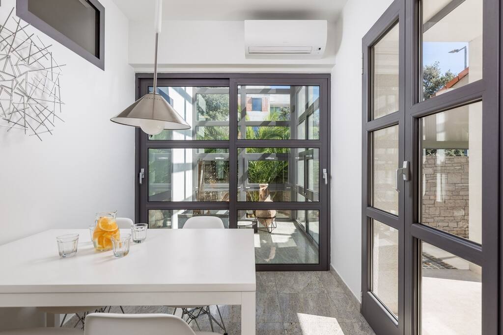 Enjoy a relaxing stay at RM Grande Villa – Right Wing, a stylish 280 m² retreat for up to 4 guests in beautiful Rovinj. With three comfortable bedrooms, two and a half bathrooms and bright interiors overlooking a peaceful courtyard, this villa offers the perfect balance of privacy and comfort. Connected to the main estate by a landscaped garden, guests can unwind at the patio, stay active in the home gym, or enjoy outdoor dining. Air-conditioned bedrooms, and shared parking ensure a convenient and comfortable stay. Ideal for a quiet getaway near Rovinj’s old town and beaches, with small pets welcome on request.