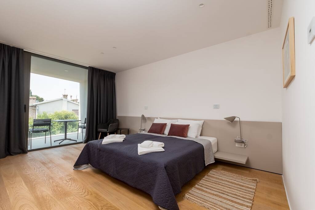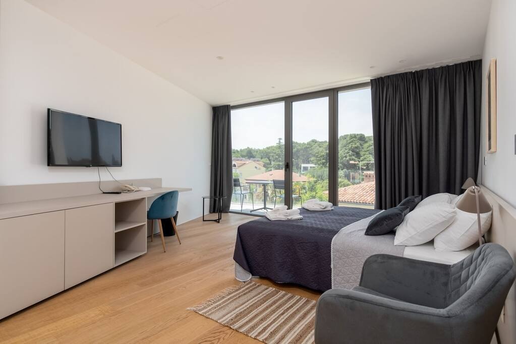 Located only minutes away from the old town center, pristine beaches, and a quiet forest park, this villa is designed with your comfort in mind. Whether you are visiting as a family or as a group of friends, we are happy to provide you with a multitude of amenities for an enjoyable stay, including a fully equipped kitchen, a small gym, a sauna, a pool, and private parking. The special feature of this house is that it offers small electric scooters for all guests for free and a large barbecue island in the yard. Each of the 6 rooms has a double bed, Sat-TV and a balcony with a view, and a private bathroom. The entire villa is centrally air-conditioned base on your location in the villa and is accessible with a lift. On the ground level, you will find the mini bar, the living room, the kitchen, and the dining area. On the lower level, the villa offers a small gym area and a sauna. On the first level are 3 bedrooms, as are on the second and last level. The villa has 6 private parking places, 6 scooters and the outside pool is 50m2. The Lone beach is only a 10min walk away as the city centre is, while the supermarket is only 200 m away. With our splendid villa, your perfect holiday can begin.