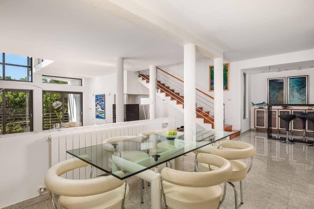 Enjoy a relaxing stay at RM Grande Villa – Right Wing, a stylish 280 m² retreat for up to 4 guests in beautiful Rovinj. With three comfortable bedrooms, two and a half bathrooms and bright interiors overlooking a peaceful courtyard, this villa offers the perfect balance of privacy and comfort. Connected to the main estate by a landscaped garden, guests can unwind at the patio, stay active in the home gym, or enjoy outdoor dining. Air-conditioned bedrooms, and shared parking ensure a convenient and comfortable stay. Ideal for a quiet getaway near Rovinj’s old town and beaches, with small pets welcome on request.
