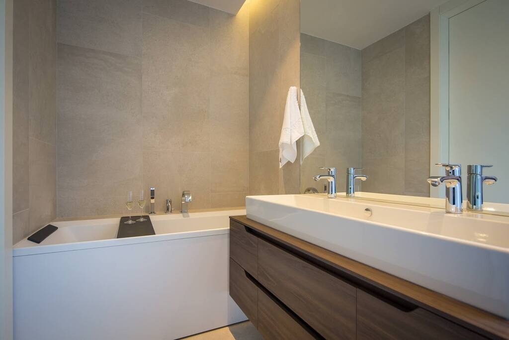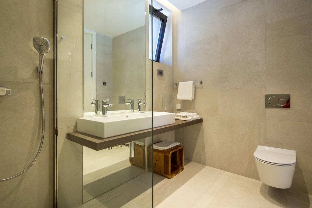 Wide clearance to shower and toilet
