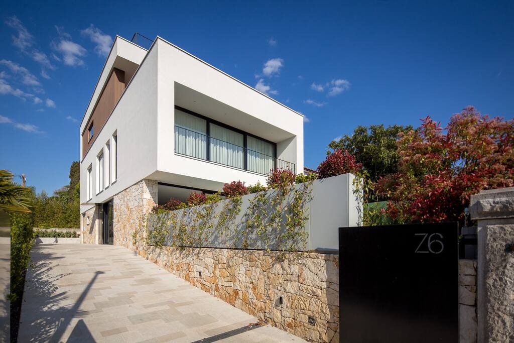 Villa Z6 is a luxury boutique villa located in the heart of Rovinj which offers a unique and immersive local experience. As with most best luxury homes, Villa Z6 is secluded enough, while at the same time close to local content offer. The property offers a large open living room with kitchen, four bedrooms and en-suite bathrooms, and one more bedroom with comfortable sofa bed which can became a home theatre room or a gaming room. There is also a covered terrace with equipped outdoor kitchen and BBQ, large rooftop terrace, outdoor space with exclusive plunge pool and 4 private parking spaces. It accommodates 10 adults comfortably, but in addition the house can accommodate up to 4 children's and 4 infants. The rooftop terrace is designed as a chill-out environment, where you can have an aperitif at sunset, with a breath-taking views of the old town, islands and the sea. The large opening and full-height windows (floor to ceiling) make it possible to transform the open space into an en-plein air lounge, thus being able to enjoy the outdoor spaces while remaining comfortably inside and have all the comforts of interior design while you stay outdoors. Take a walk along the Lungomare (Plaza) promenade with exclusive shops, restaurants, and bars. Enjoy the view of yachts and boats harbored in the new five-star marina and visit the Mulini Beach Bar located just minutes away from the villa. Enjoy over 800 square meters of indoor-outdoor living spaces in the most refined comfort.